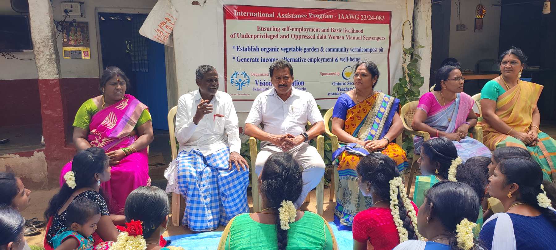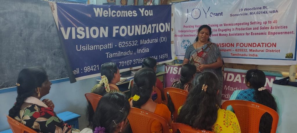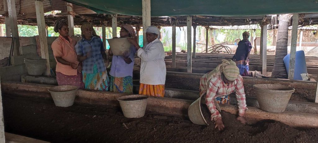 Today many people are leaving agriculture because they are facing huge losses. The reason is that they use chemical fertilizers and pesticides. This practice has turned their potential land into wasteland. The only solution is to retain farmers and promote organic farming methods. Therefore, with the support of our women self-help groups, we have taken up the challenge of promoting organic farming among women farmers. With the support of seed money provided by OSSTF, Canada, organic farmers are becoming self-sufficient through production and marketing activities by setting up a community organic vegetable garden and vermicompost pit.